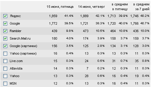 Интересная и довольно репрезентативная статистика, показывающая, какие именно поисковики предпочитают в зоне RU: