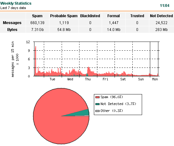 Заодно выяснил, сколько личных писем, уже безо всякого спама, я получаю в неделю (это только на ящик exler@exler.ru). Оказалось - 1400.