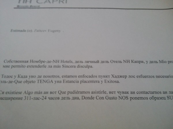 P.P.S. Ну и в тему русского испанского. Вот это невыносимо прекрасное сотворили ребята из одного кубинского отеля. Официальный перевод на русский, между прочим (прислали такой документ). Понятно, что скормили переводчику Гугла и не парились (хотя и для Гугла что-то совсем круто). Но последний абзац вставляет безмерно.