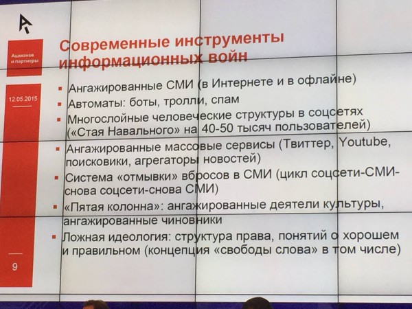 Кадрик презентации выступающего на трибуне РИАНа. Во всей своей красе - "Стая Навального", пятая колонна, ложная идеология концепции "свободы слова" - прям жаль, что я это не послушал.