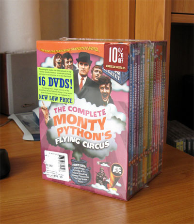 16 DVD. Полный комплект. По 3 эпизода на диске. Качество, конечно, не супер, все-таки сто лет назад снималось, но явно лучше, чем ходит у нас c древних VHS. А главное - все выпуски полностью с английскими субтитрами, что лично мне, например, весьма актуально.
