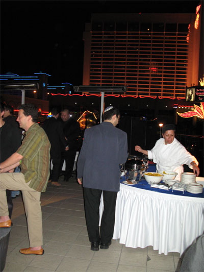 Вчера на майкрософтовской тусовке на крыше Caesars Palace (что в Лас-Вегасе) неожиданно встретил Носика. На снимке ему наливают какой-то супец.