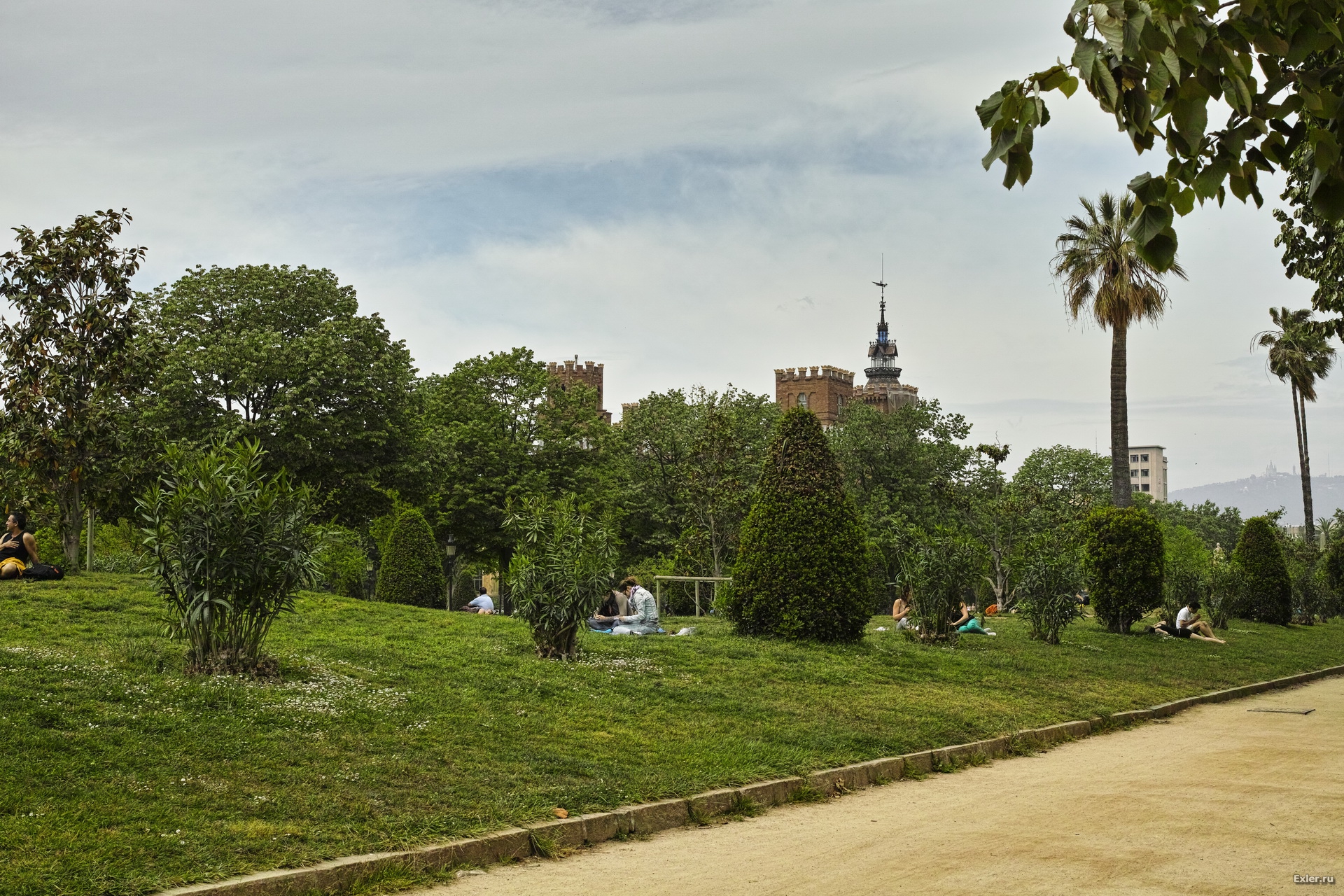Вид на Замок Трех Драконов. На лужайках народ отдыхает, устраивает пикники (мусор никто не оставляет ни соринки) - в общем, расслабляется. И это вполне разрешается.