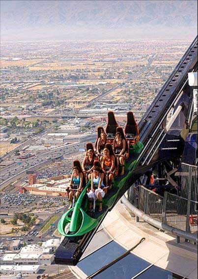 Я Вегасе на этом аттракционе катался. Кстати, что интересно, совершенно не страшно, хотя я обычно высоты боюсь. Так, гоняешь себе над бездной - прикольно... Вот фотография, которую я сделал как раз с этого аттракциона - весь Стрип (главная улица) Вегаса как на ладони: