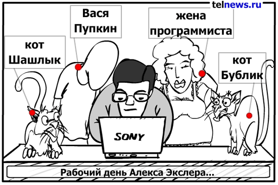 На Telnews опубликовали карикатуру "Рабочий день Алекса Экслера":