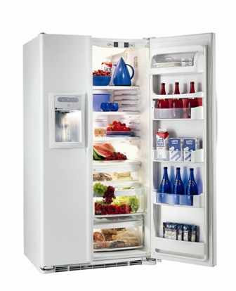 Заказали для новой квартиры холодильничек General Electric. Я с этими устройствами уже имел дело, поэтому решил, что будем брать именно эту фирму - оно недешево, но зато холодильники действительно классные. Особенно раскатывать губу не стали - холодильник с заказом продуктов через Интернет мне ни к чему, - мне главное в нем льдогенератор, поэтому взяли достаточно недорогую модель General Electric GCE 21 - вот такой (бутылки в комплект не входят, они просто украшают картинку):
