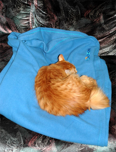 "Озон" с одним из заказов прислал плед со своим логотипом - в подарок. Довольно быстро выяснилось, кому именно в этом доме подарок больше всего понравился!