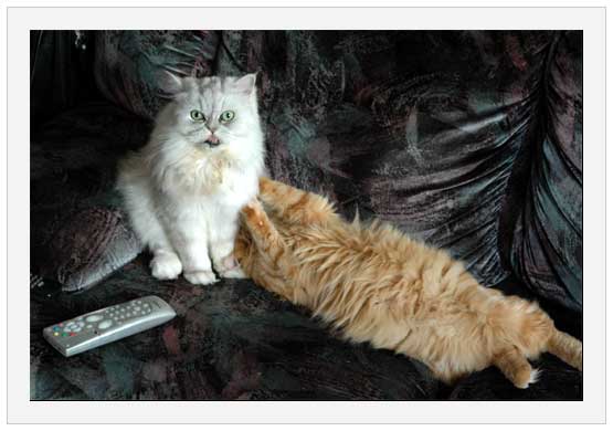 У Анфисы пришла весна. Поет соответствующие песни, делает позы, по ночам под дверью спальни требует кота - вот прямо ЩА! И до того ей хочется простой, но чистой любви, что даже уже пыталась соблазнить на это дело слегка кастрированного дедушку Тошу. Тот, впрочем, в ответ на один весьма недвусмысленный призыв поступил, как настоящий мужик: схватил ее за холку, пнул ногой, что-то там мявкнул и галопом помчался на кухню - посмотреть, не положили ли пожрать. Вот кастрированный, а все-таки мужик!
