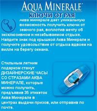 За обедом разглядывал этикетку "Аква-минерале" и увидел рекламу, в которой предлагают, во первых, ключи от рая (суперэлитный отдых в компании миллионеров в вилле на берегу океана - ага, ага), а во-вторых, за 35 крышечек - "дизайнерские часы со стразами "Аква-минерале"". Начал представлять себе "дизайнерские часы со стразами" стоимостью в 35 крышечек от "Аква-минерале" и вспомнил одну простенькую историю...Приехал как-то в гости к своему хорошему сочинскому знакомому. Он - солидный человек, построил домик за пару миллионов долларов (это если со всей начинкой, землей и так далее) в живописном месте. У него есть дочь: спортсменка, комсомолка и просто красавица, в которой он души не чает и делает для нее все и даже больше. Дочка, кстати, при этом вполне приятная девушка, но современный мир понимает весьма четко: недавно отказала какому-то ухаживающему за ней парню, потому что у парня, дескать, нет нормального "Мерседеса". В общем, соображает дочка, и в этой жизни она явно не пропадет.