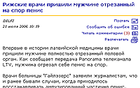 Цитирую отсюда:Впервые в истории латвийской медицины врачи пришили мужчине полностью отрезанный половой орган. Как сообщает передача Panorama телеканала LTV, мужчина отрезал себе пенис на спор.