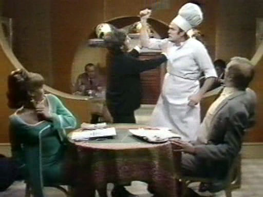 "Монти Пайтон", скетч "Ресторан и грязная вилка". Посетители приходят в ресторан три звезды, обнаруживают грязную вилку и ставят на вид менеджеру. В общем, потом все умерли. Очень смешной скетч, рекомендую. Джон Клиз в роли бесноватого повара - это нечто!