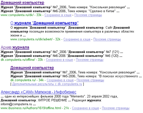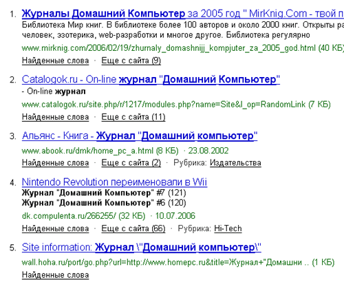 Но сегодня повторилась та же картина. Искал в "Яндексе" сайт журнала "Домашний компьютер". Ввел запрос: "Журнал "Домашний компьютер". Получил вот это: