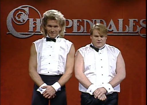Приехал новый диск SNL - "Избранное из Криса Фарли". Начинаю оттуда потихоньку выкладывать для ознакомления лучшие эпизоды. Первым делом пойдет знаменитый танец Криса Фарли и Патрика Суэйзи (многие его вообще считают лучшим номером Криса). Я на него уже давал ссылку, но там был только кусочек и качества паршивого. Здесь - весь номер с нормальном качестве. Язык - английский, но можно смотреть и без языка, там главное - сам танец.