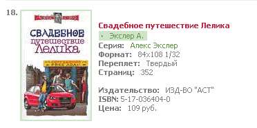 Интересно, какой российский журналист первый ляпнул, что дочку Анжелины Джоли и Брэда Питта зовут ШИло? Один ляпнул, а остальные подхватили. Я понимаю, каков соблазн был потом блистать суперостроумными заголовками из серии "Джоли родила шило" и так далее, но девочку зовут не Шило, а Шайло. Шайло Нувель, что означает "новый мессия"... Впрочем, чему уж тут удивляться, если даже некоторые киножурналы Сандру Буллок упорно именуют Сандрой Баллок, а Мартина Скорсезе - Мартином СкорЦезе. Причем если бы тут были какие-нибудь тонкости, как в неоднозначных фамилиях Кейтеля, Бушеми, Кучера и так далее, то никаких тонкостей в данном случае нет - только элементарная безграмотность. Книга "Свадебное путешествие Лелика" появилась в первой двадцатке продаж издательства "АСТ". Приятно. Там соперники суровые: Лукьяненко, Веллер, Паланик, Дашкова, Шелдон, Браун и так далее. Что интересно, как и "Ария..", книга стоит на 17-18 месте.