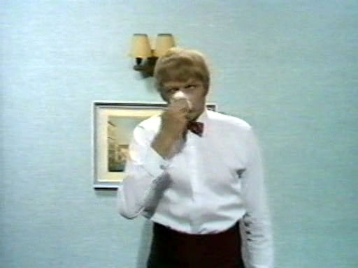 "Монти Пайтон", коротенький скетч "Человек с двумя носами". Он очень простенький, но смешной. Яркий пример того, как эти ребята умели делать скетчи буквально "из воздуха". Изображение апплодирующих бабулек также имеет значение - это используется несколько раз в других скетчах, кроме того бабулькам потом будет посвящен отдельный скетч.