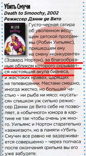 А вот в описании фильмов, в которых снимался Эдвард, содержатся просто непростительные для журнала такого уровня (весьма высокого, на мой взгляд) неточности. Вот, например, из описания фильма "Убить Смучи":