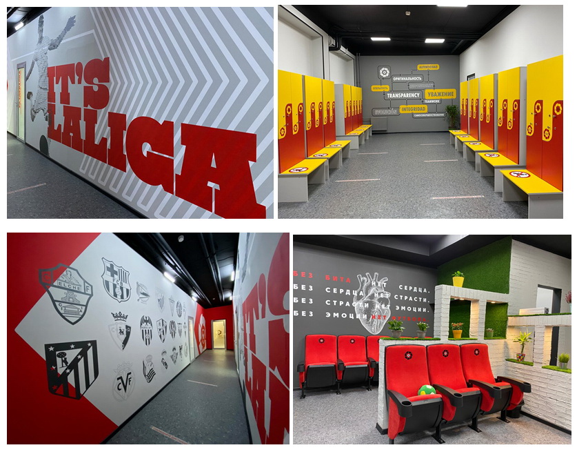 Все в футбольной академии ЛаЛига организовано как на настоящих тренировочных базах испанских футбольных клубов. От символики и атрибутики в раздевалках до формата тренировок и игр.