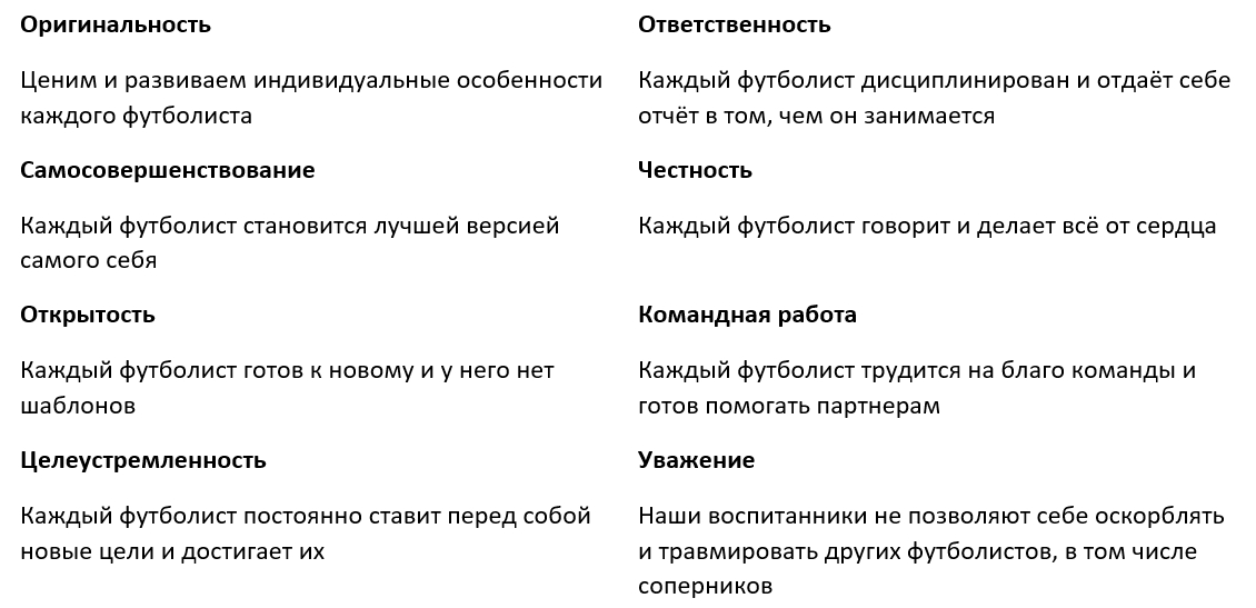 Воспитанникам прививается уважительность к другим игрокам и другим людям в принципе.