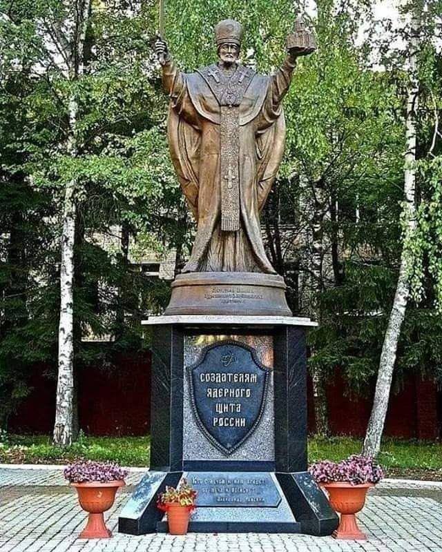 Не фейк, не "Фотошоп". Скульптор С. М. Исаков, памятник отлит в мастерских А.А. Устенко в 2007 году. Установлен в Сергиев Посаде. Говорят, изредка мироточит живительной радиацией.