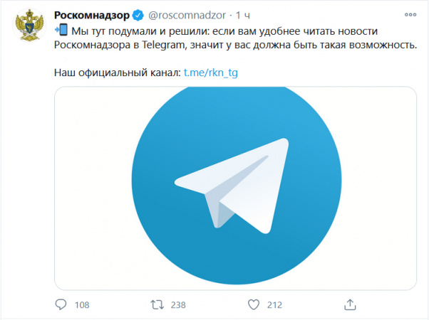 "Роскомпозор", за чьими убогими и безуспешными попытками закрыть в России "Телеграм" мы наблюдали с апреля 2018 года, открыл в "Телеграме" свой канал. Это, конечно, совершенно восхитительная шизофрения.