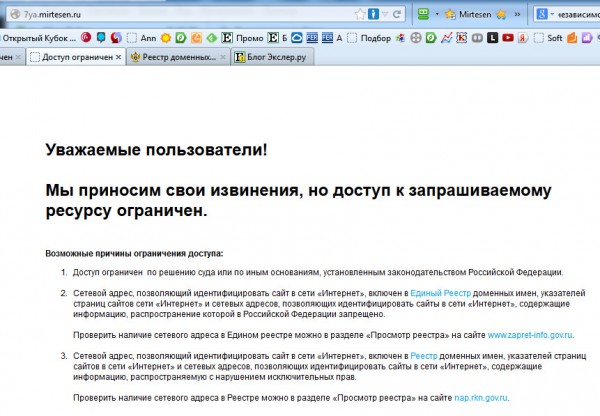 Но главная хохма заключается в том, что ни один из этих доменов третьего уровня, ни сам mirtesen.ru в роскомнадзоровских списках не обнаруживаются.