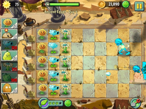 Наконец-то вышло продолжение знаменитой игры - Plants vs Zombies 2: впрочем, пока только под iOS. Скачал, поиграл в самолете. Надо сказать, что, вопреки ожиданиям, продолжение получилось на редкость удачным, я даже и не ожидал. Сиквелы известных игр обычно разочаровывают, а тут создатели улучшили и развили именно то, что нужно было улучшить и развить, так что получилось просто отлично.