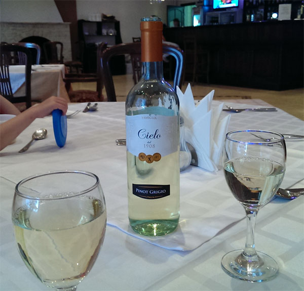 Заказали ребенку бутерброд с сыром (у него пищевые предпочтения, как это бывает у детей, несколько странные и даже иногда пугающие), нам по салату из языка, мне котлету по-домашнему с гарниром, а жена себе взяла обычные сырники. Еще заказали воду и бутылку винца.