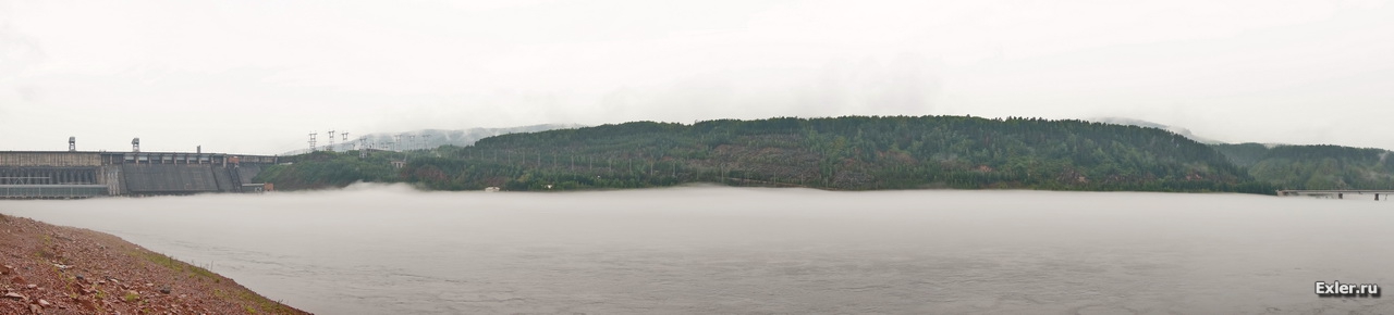 Подъехали поближе к ГЭС, хотели сфотографировать в деталях - а тут совсем все туманом заволокло, ничего не получилось. Увы.