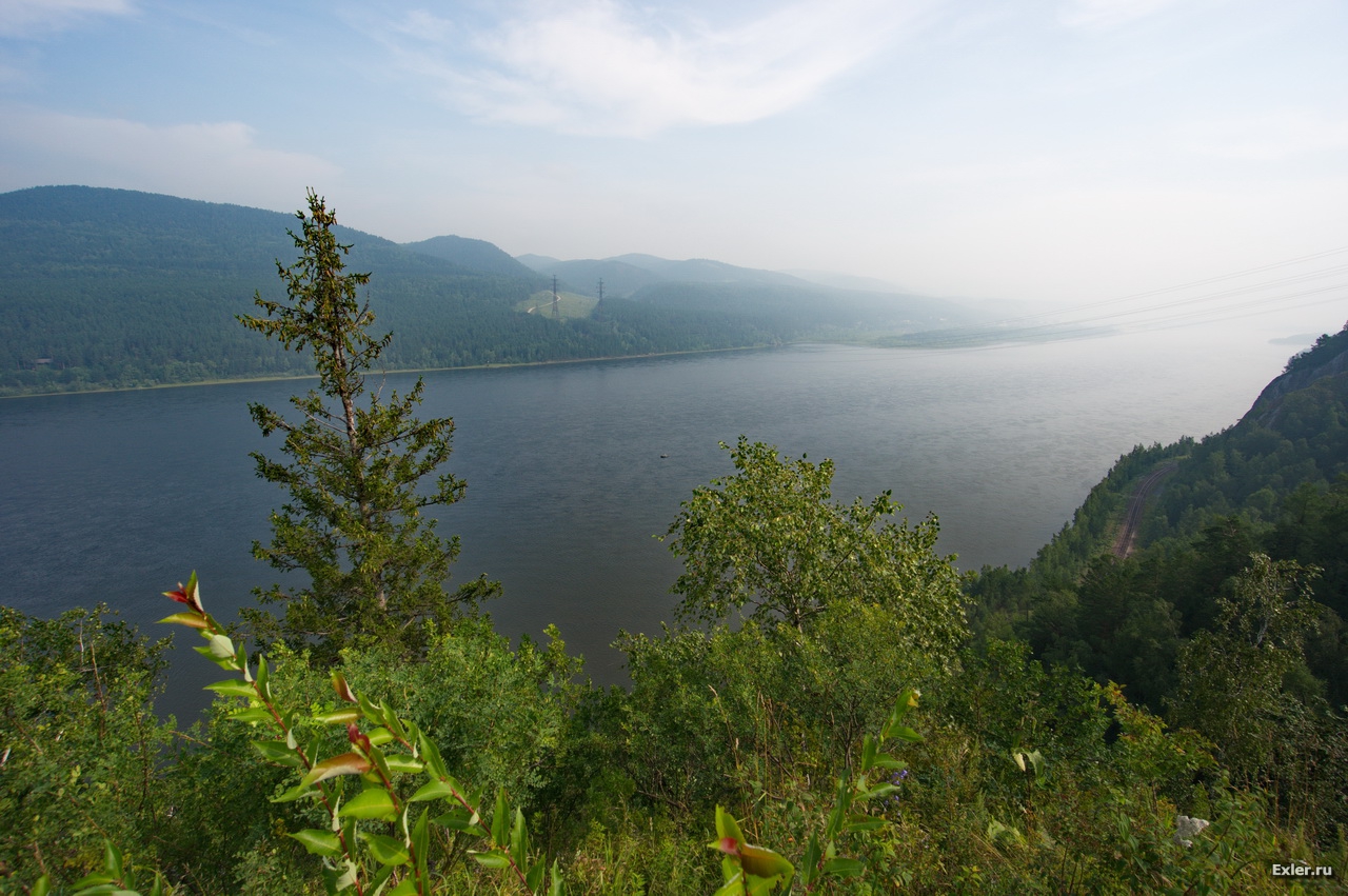 Смотровая площадка "Царь-рыба" на Слизневском утесе близ деревни Овсянка, родины писателя Виктора Астафьева. Площадка представляет собой балкон на отвесной скале, к которому ведет дорожка от автомобильной стоянки.