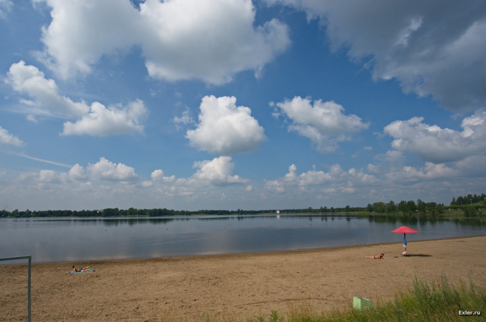 В Железногорске есть очень красивое озеро искусственного происхождения: оно создано силами жителей города, которые расчистили пойму реки Кантат, после чего сделали дамбу и систему шлюзов, благодаря которым появилось это озеро - посмотрите, какая красота. Это все в черте города: вокруг озера - жилые кварталы. (Все фото - кликабельны.)