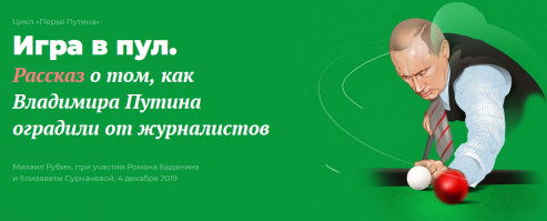В издании "Проект" интересная статья "Игра в пул. Рассказ о том, как Владимира Путина оградили от журналистов".