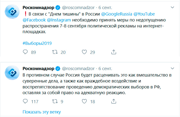Мне вот прям интересно: а что этот роскомпозор сделает-то Гуглу, Фейсбуку и Инстаграму в случае РАСПРОСТРАНЕНИЯ политической рекламы на интернет-площадках в пра-а-а-ативных случаях? ЗАБЛОКИРУЕТ? Как он второй год подряд Телеграм блокирует, болезный?