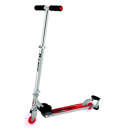 Ну и еще один самокат - детский Razor Spark Ultra со светящимися колесами и снопом искр (безопасных, разумеется), летящих при торможении. Для детей от 8 лет, от 100 до 165 см, до 65 кг. Очень легкий, весит 2,5 кг. И очень эффектный, дети от него в восторге. Цена со скидкой - 4990 рублей.