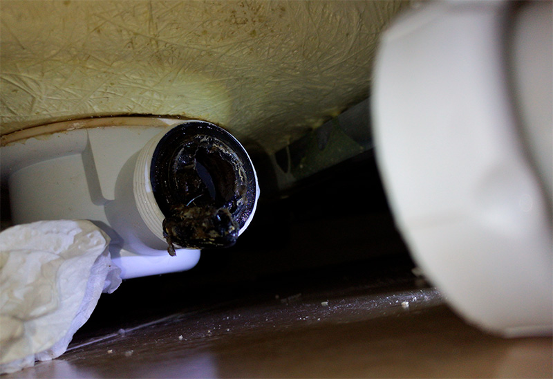 Опять несколько приступов клаустрофобии, опять кого-то по разу придавили, но добрались, сфотографировали. Выяснилось, что там тоже пластмасска, которая сдохла. И через нее течет конкретно прямо из слива. И что с этим вообще делать - непонятно совершенно.