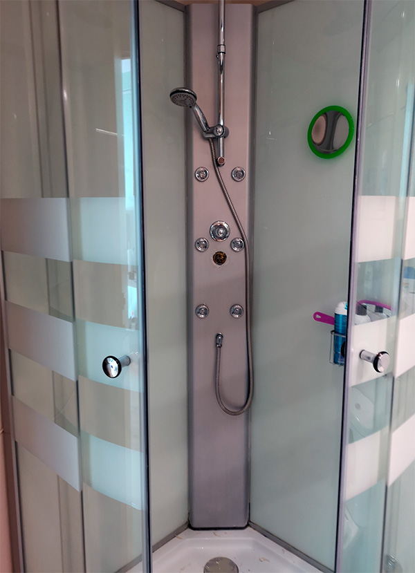 Ура, ура, наконец-то я с душем! Маноло налил воды в слив, проверил - вроде ничего не течет. Запинал кабинку на место. Выписал счет (Маноло все оформляет через контору, как полагается), уехал.