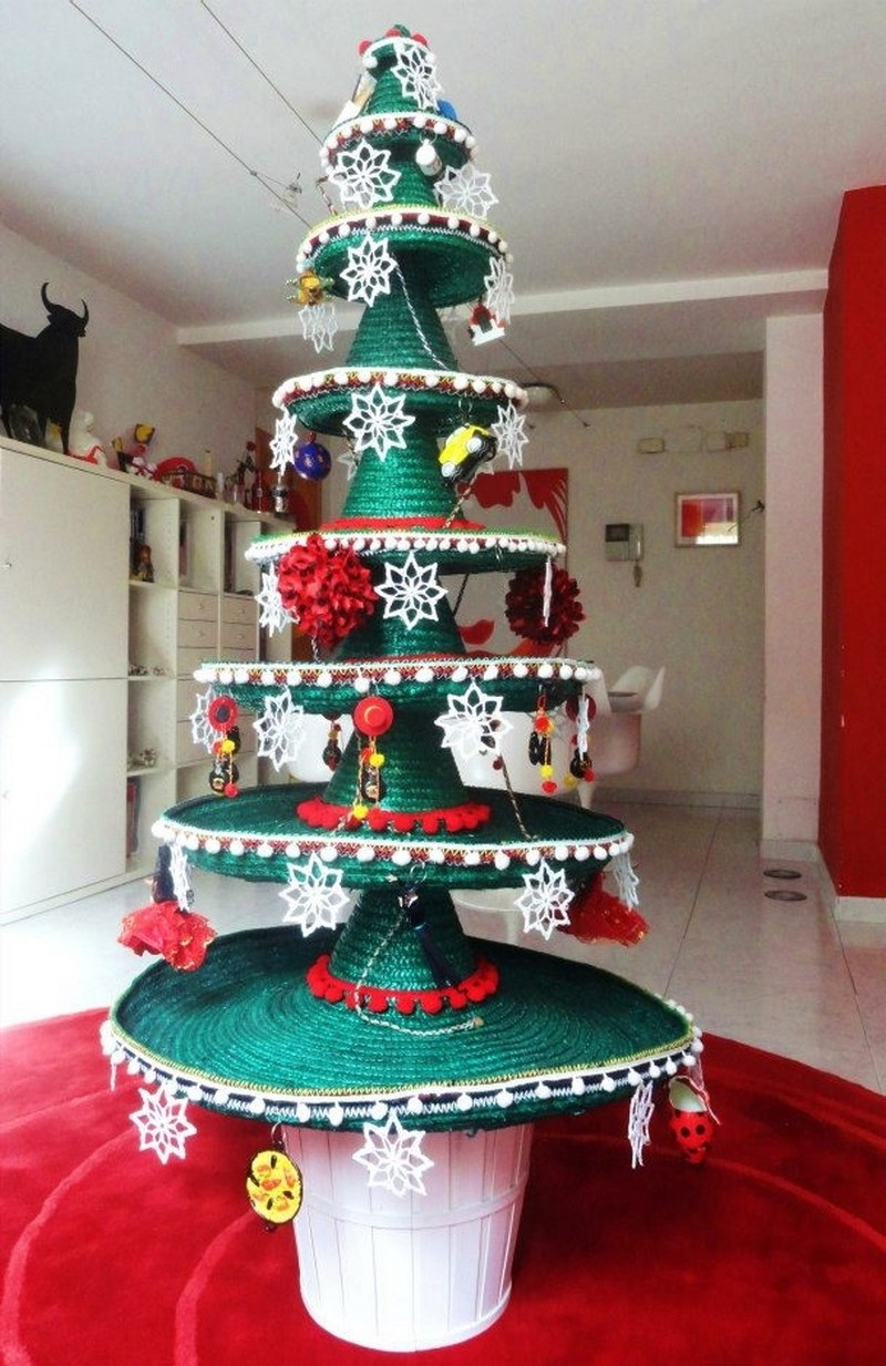 И вот вам оригинальные ёлки: носкоёлка, книгоёлка, колпакоёлка, сомбрероёлка и стеноёлка.