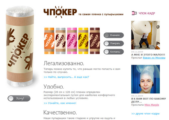 Умные люди додумались выпускать пленку с пупырышками вовсе не для того, чтобы в нее что-то упаковывать. А для того, чтобы ею просто чпокать. Сделали сайт Чпокер.ру.