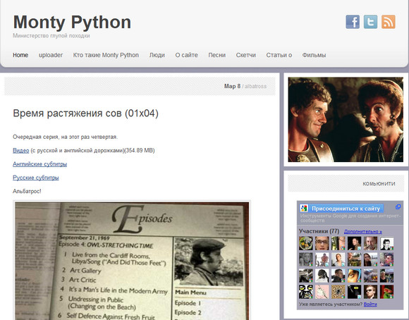 Собраны кое-какие статьи, фотографии, но главное - выкладываются скетчи с русской, английской дорожкой, а также с английскими и русскими субтитрами.