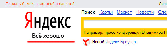 А чего "Яндексу"-то так захорошело? Нет, меня всегда радует чужое счастье, но просто раньше там было написано "Найдется все". Уже все не находится, зато все хорошо?