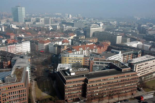 К сожалению, была заметная дымка - фотографии получились сероватые. Но все равно внушает: Гамбург - красивый город. (Напоминаю, фотографии кликабельны - открывается большая 1024 пикселов.)