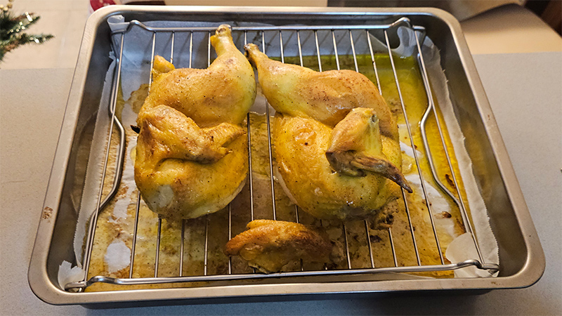 Алекс, а зачем на противне бумага, если птица всё равно на решетке?