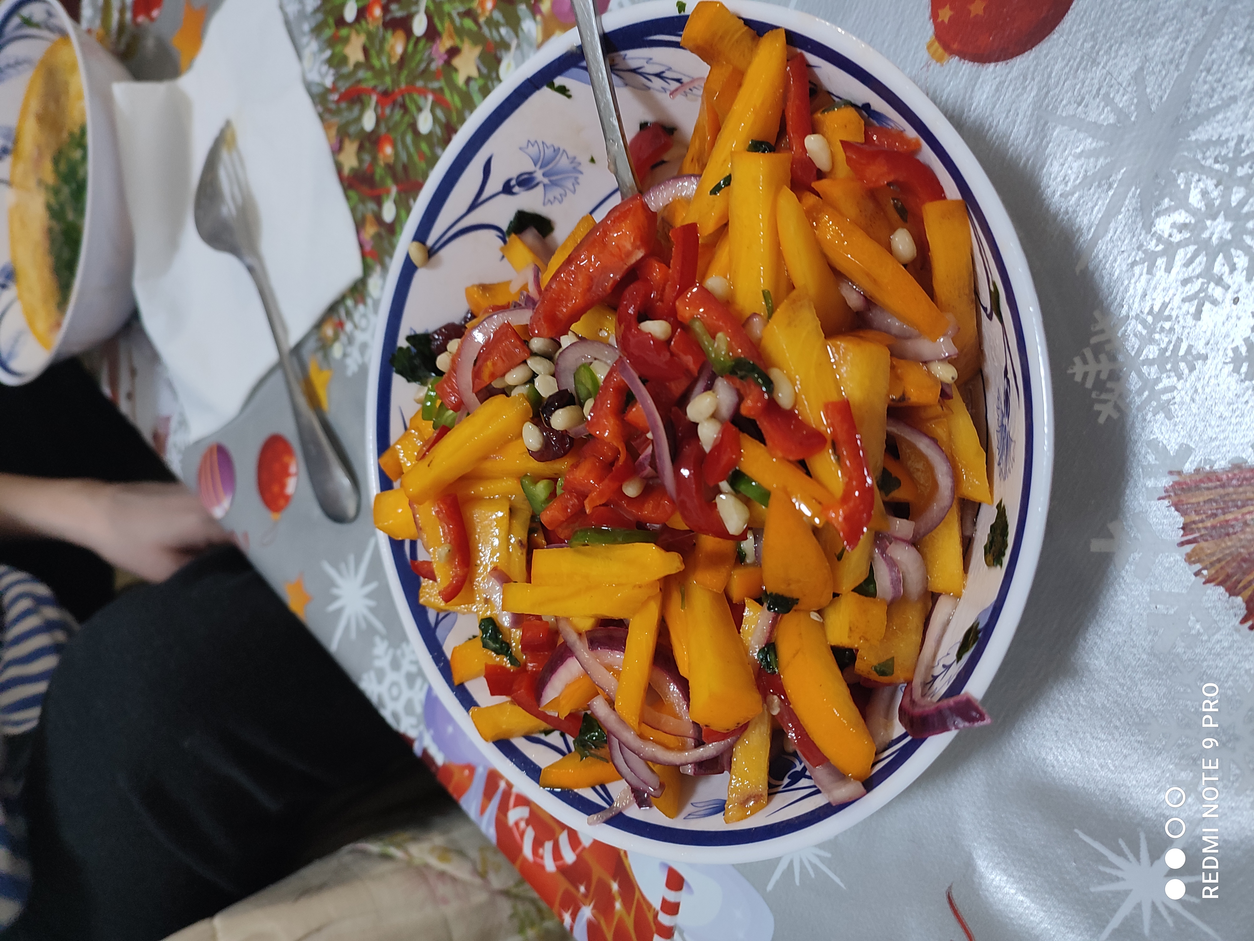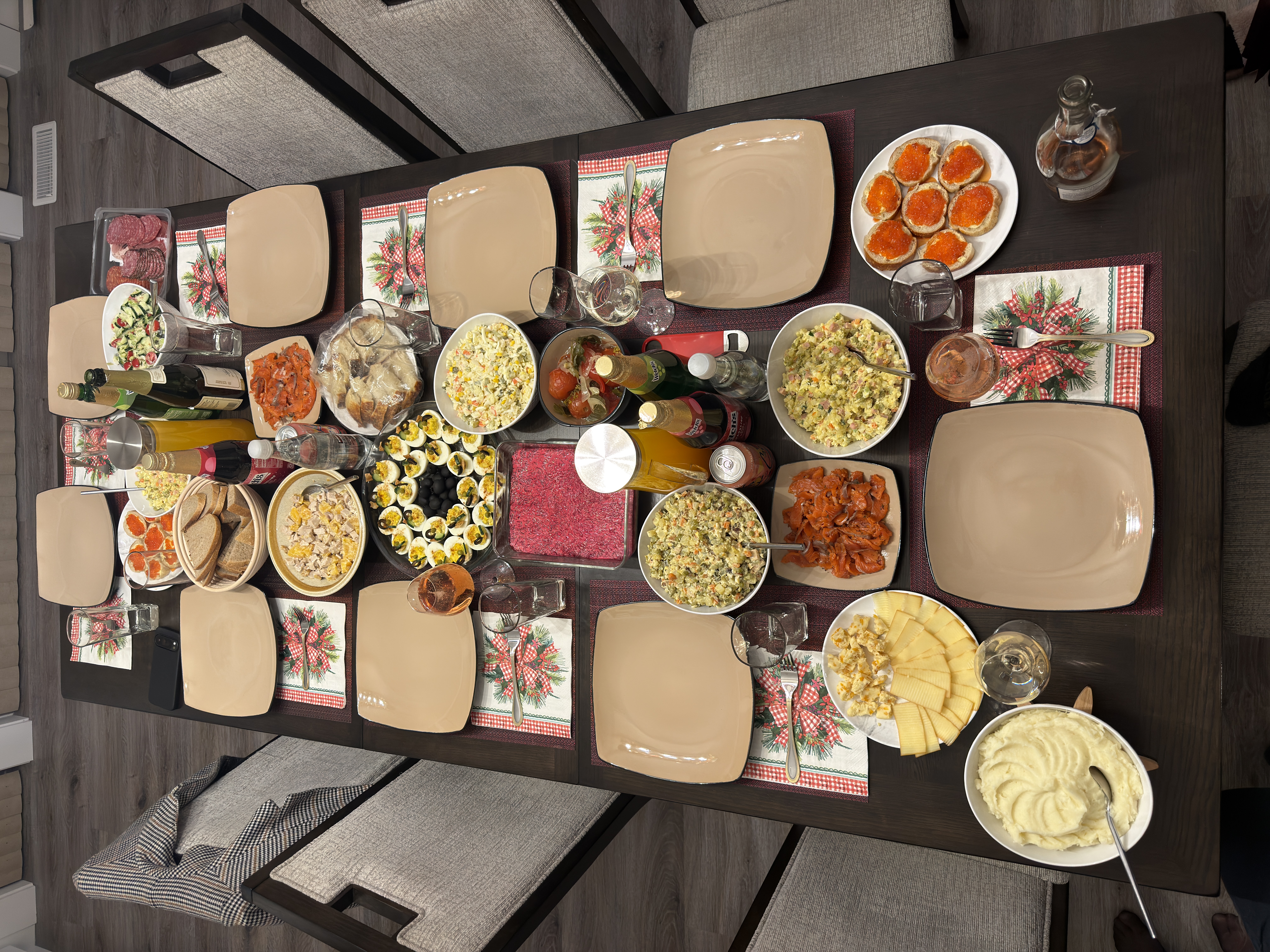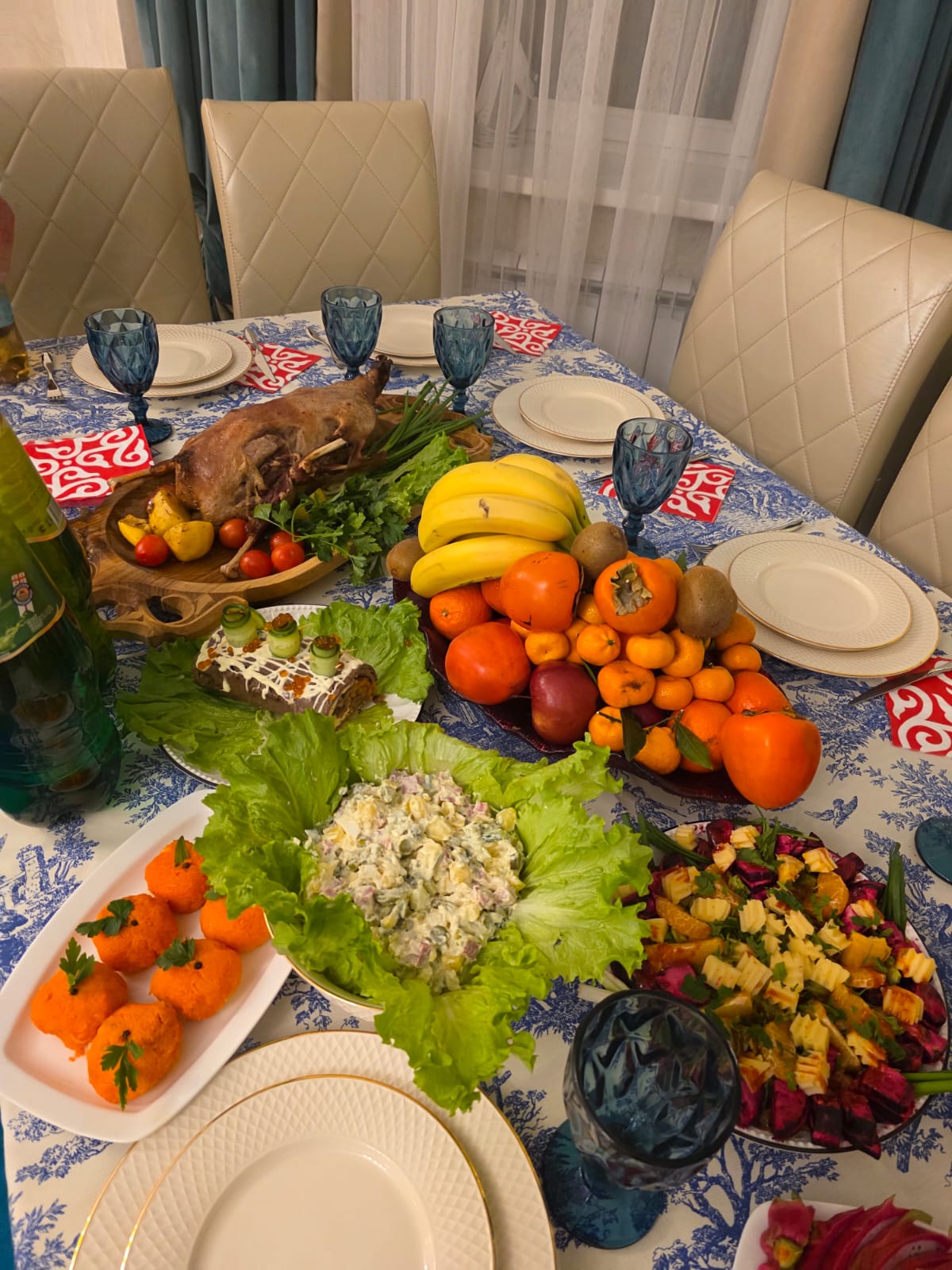 Да, был там от меня салат оливье, но он простоял чисто в духе интернационализма, мы его не ели 😄