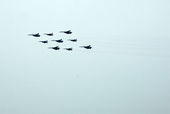 Я тоже с балкона пронаблюдала... Низко так шли... Жутковато немножко, такие самолеты... Я в том году подумала, что военные действия начались!... Сейчас уже знаю, что репетиция парада, но все равно, не по себе как-то...