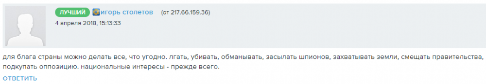 А основной посыл - следующий: если росийское официальное лицо открыло рот, значит, оно будет врать. Без вариантов.