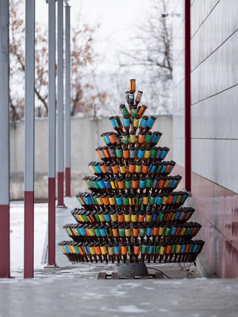 Отличная идея для елки - отсюда. С ней - сплошные плюсы! Во-первых, ее не свалит кошка. Во-вторых, не будет вырублена зеленая красавица. В-третьих, к этой елке отлично подходят вот такие елочные игрушки.