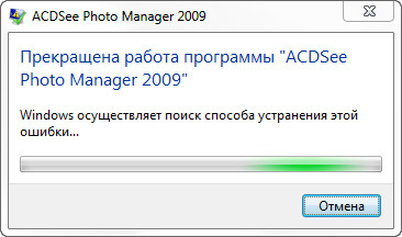 Интересно то, что официально купленный за $50 ACDSee Photomanager 2009 (ACDSee 10) что под Vista, что под W7 практически ни черта не работает. Выдерживает максимум минут пять, после чего нагло вываливается, и остается наблюдать вот такую милую картинку.