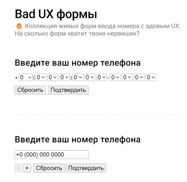 Кто осилил ввод телефонов, попробуйте пробраться в финалу здесь — userinyerface.com