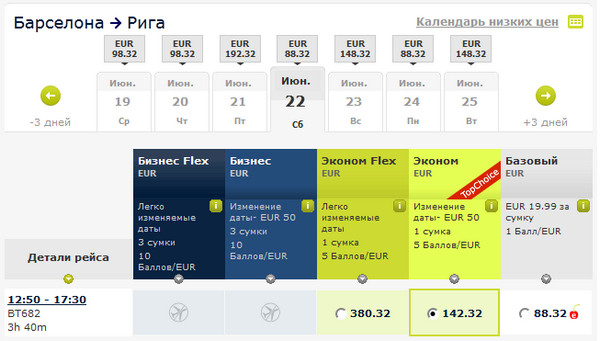Забавно. В прошлом году брал на AirBaltic билет из Барселоны в Ригу - заплатил чуть ли не 250 евро. Сейчас смотрю - 88 евро. Ну, со всеми накрутками (багаж, место) - 132 евро. В два раза подешевело. И рейс стал удобнее - в 17:30 прилетает, а не в 20, как в прошлом году.