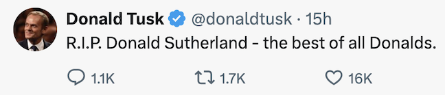 На BBC сообщили о смерти Дональда Сазерленда.