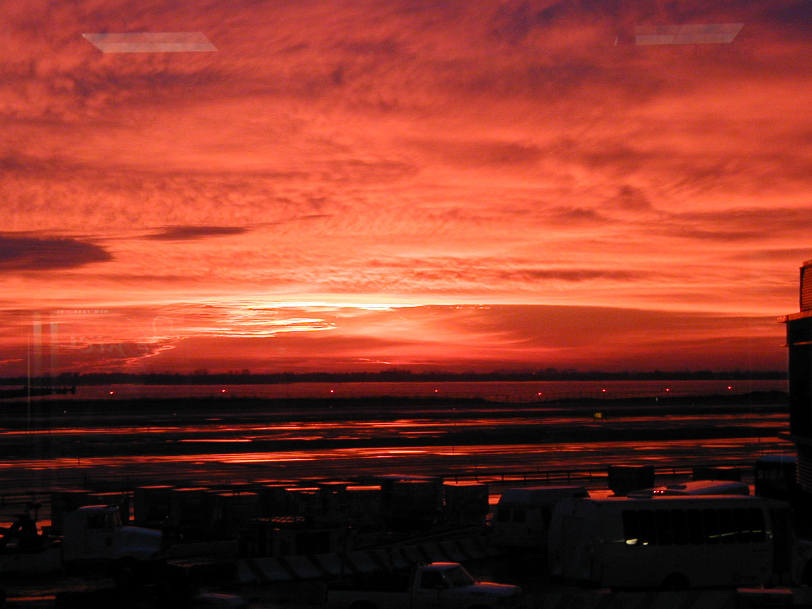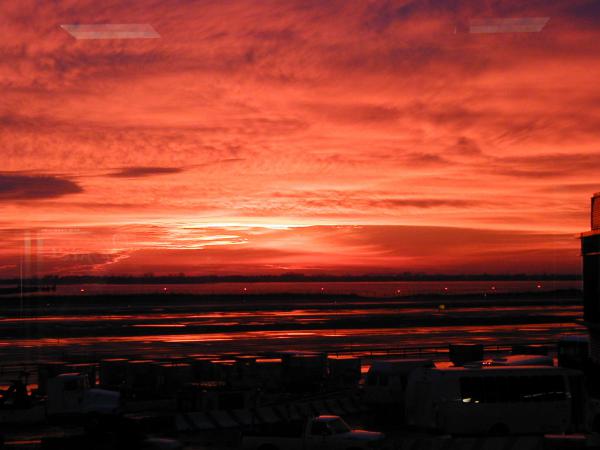 Закат в аэропорту Нью-Йорка.